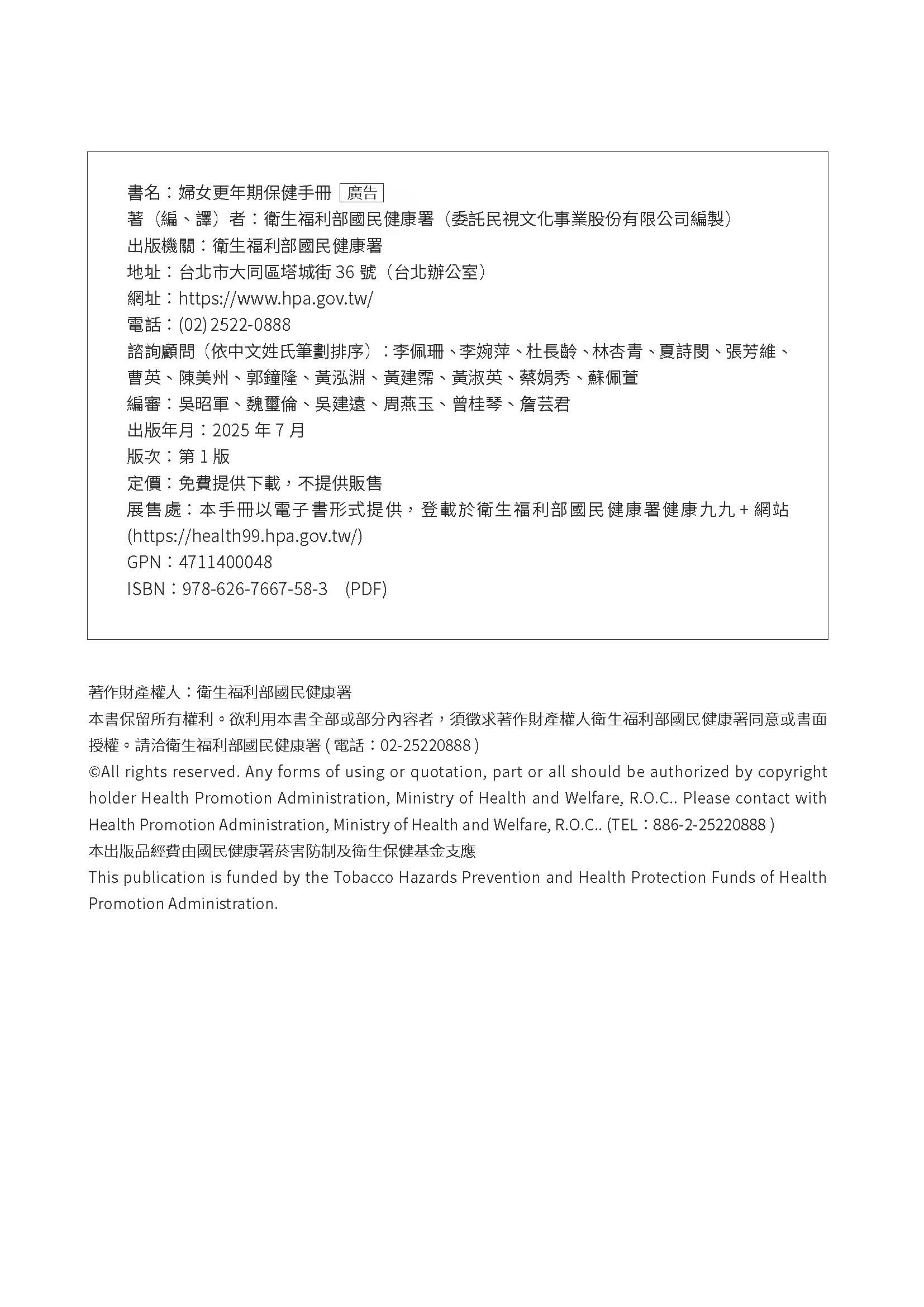 婦女更年期保健手冊