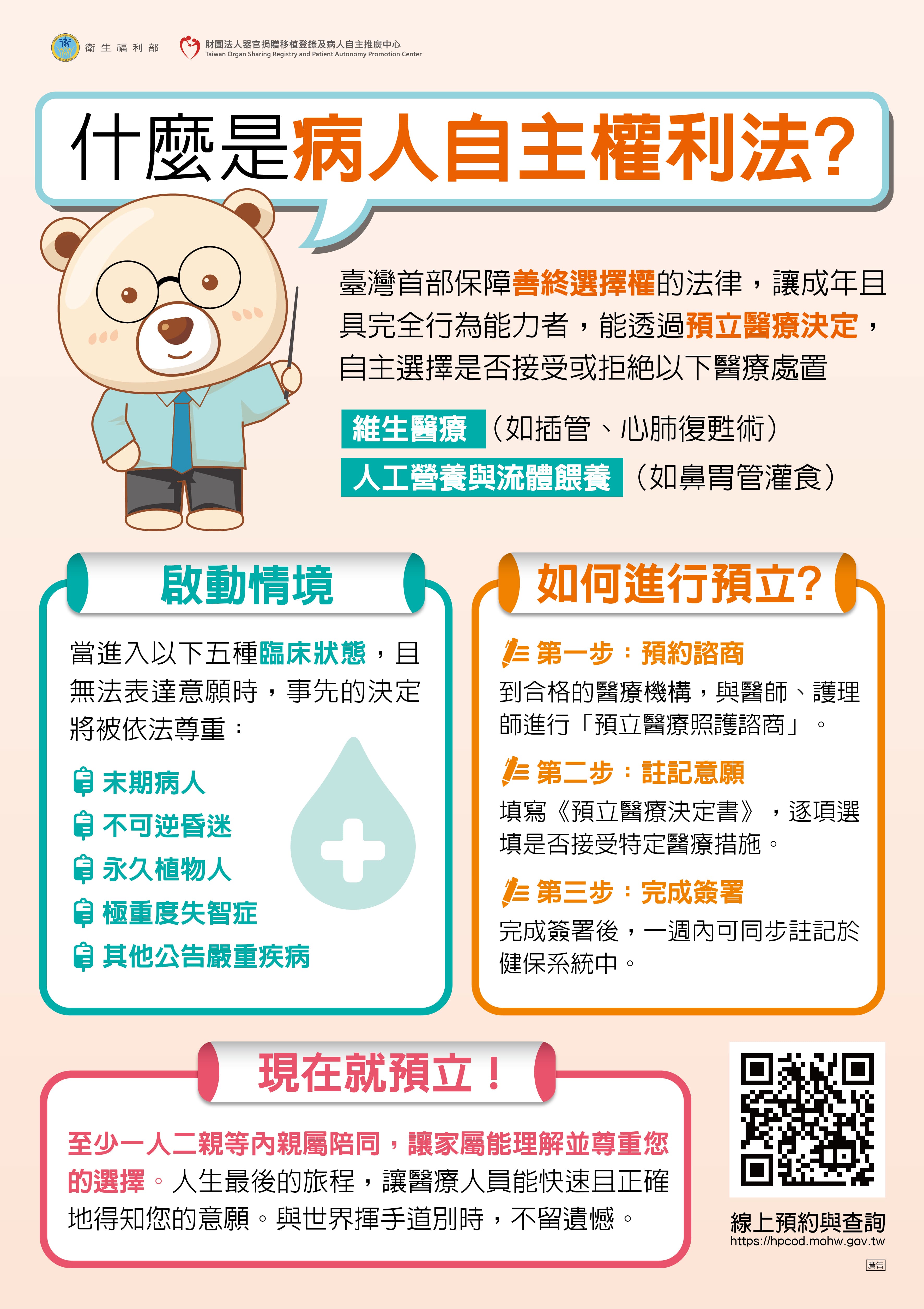 預立醫療決定、安寧緩和醫療及器官捐贈意願資訊系統:https://hpcod.mohw.gov.tw/HospWeb/