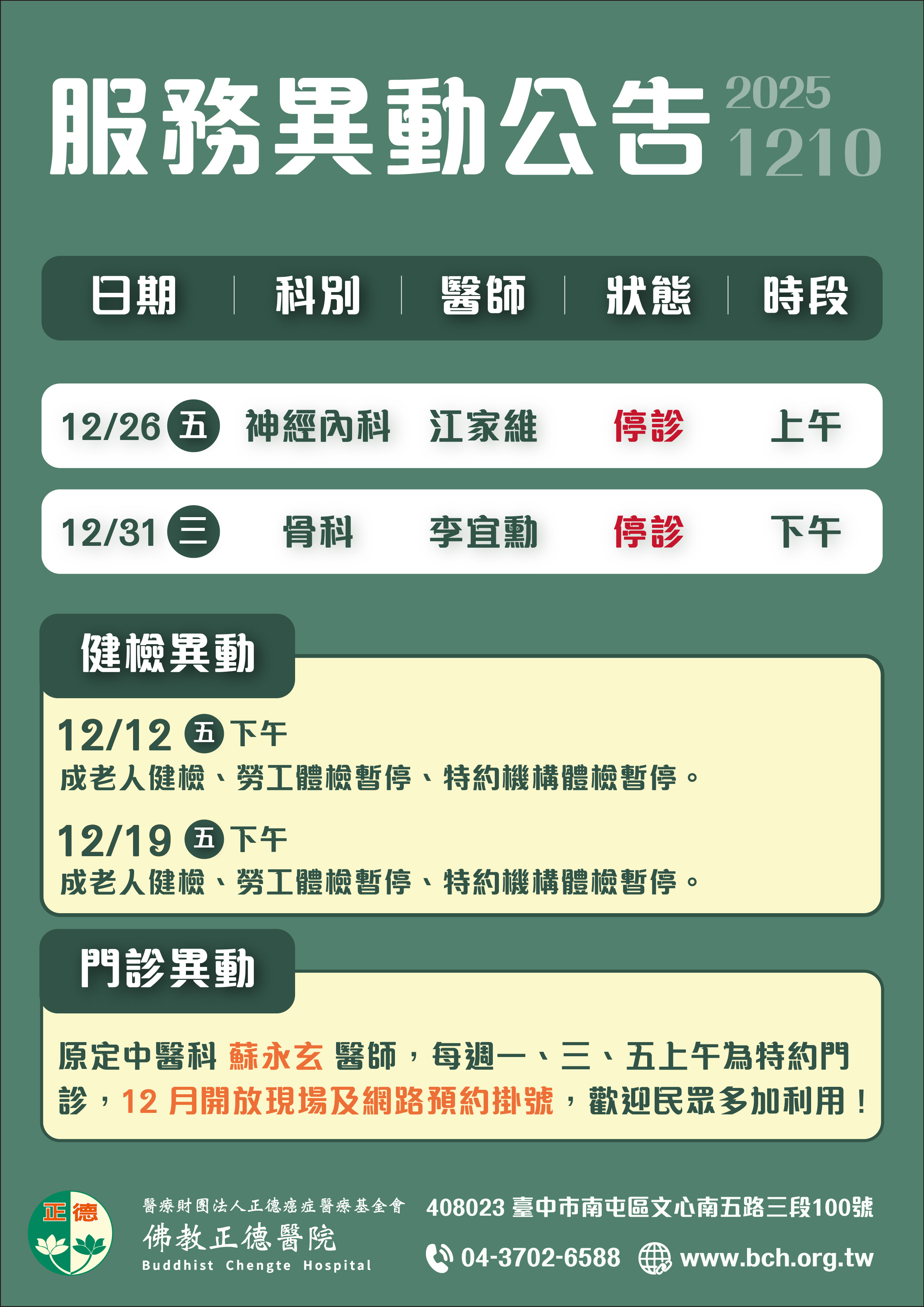 轉診服務異動公告