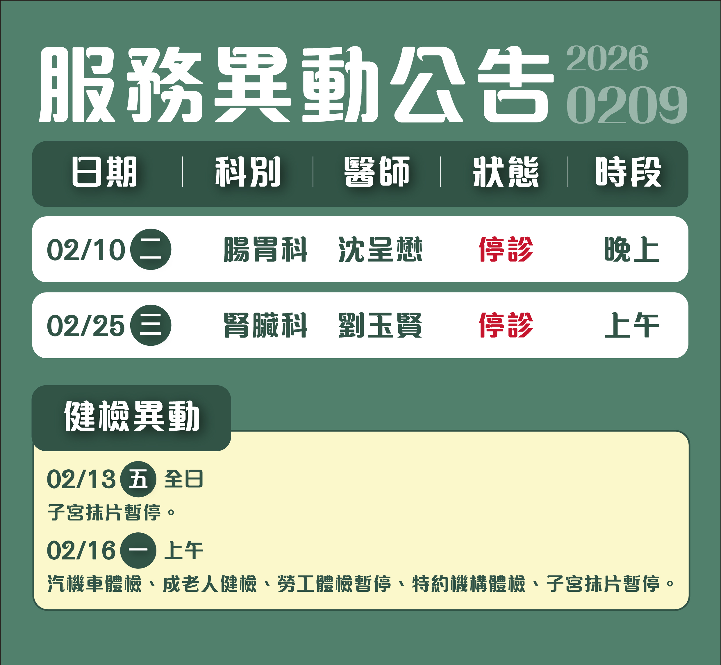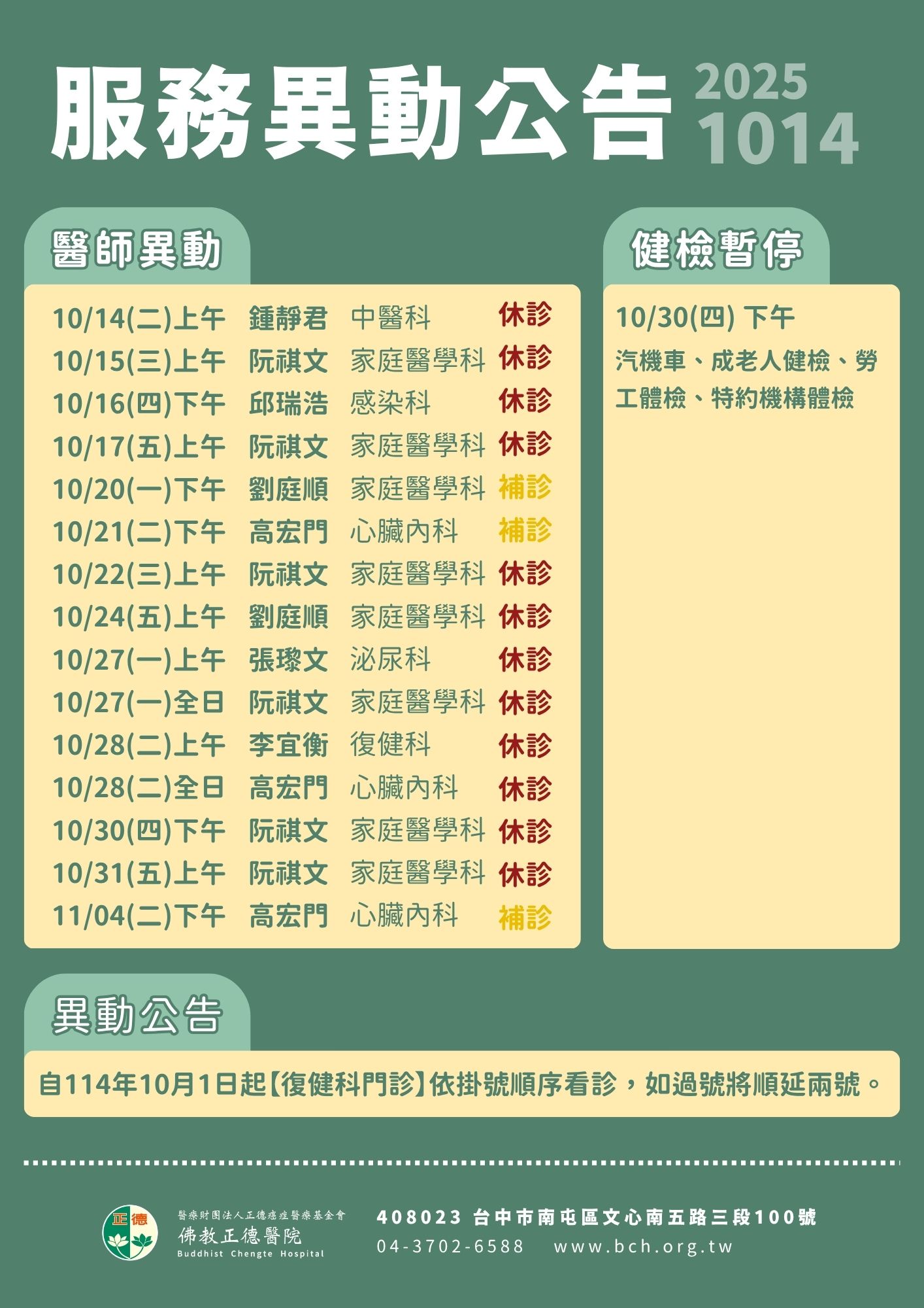 服務異動公告